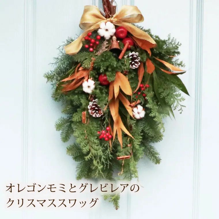 『オレゴンモミとグレビレアのクリスマス スワッグ・生 55cm』