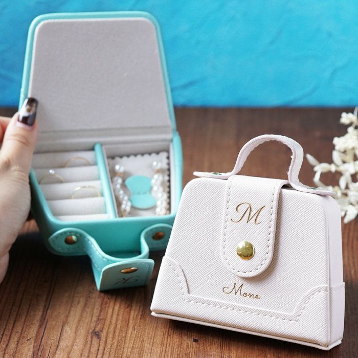 \名入れで特別がたくさんつまったバッグ型の名入れアクセサリーケース携帯用/