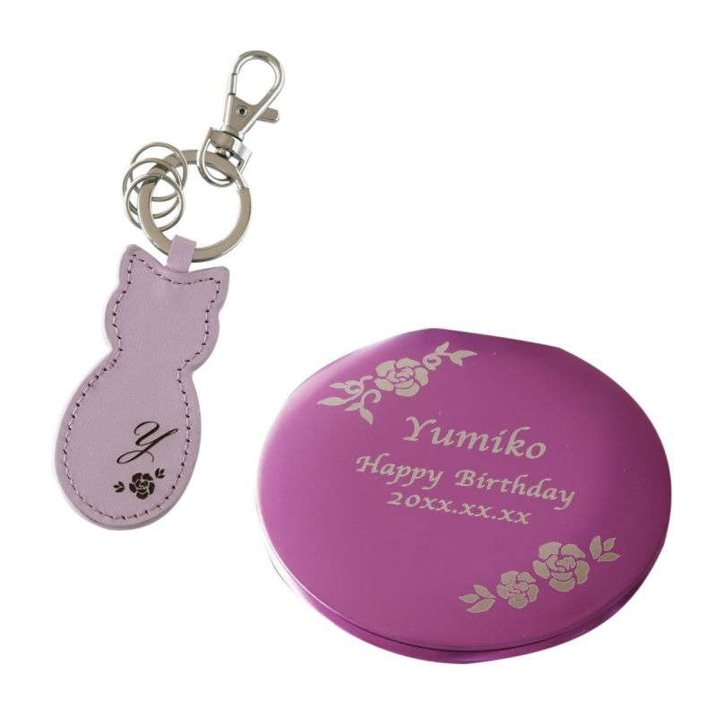 キーホルダーにはイニシャル、ミラーにはメッセージやお名前を入れることが