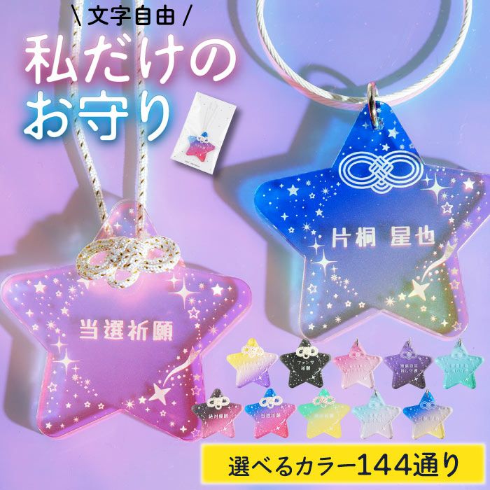 オリジナルの流れ星デザインと、キラキラの台紙、キラキラの紐もついて