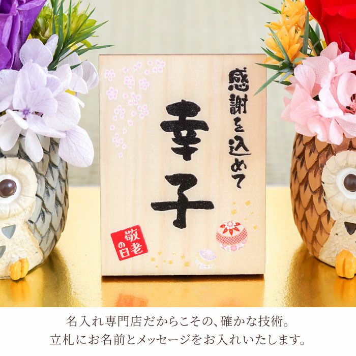 ふくろうの間にはお名前とメッセージを入れられる立札をお付けします