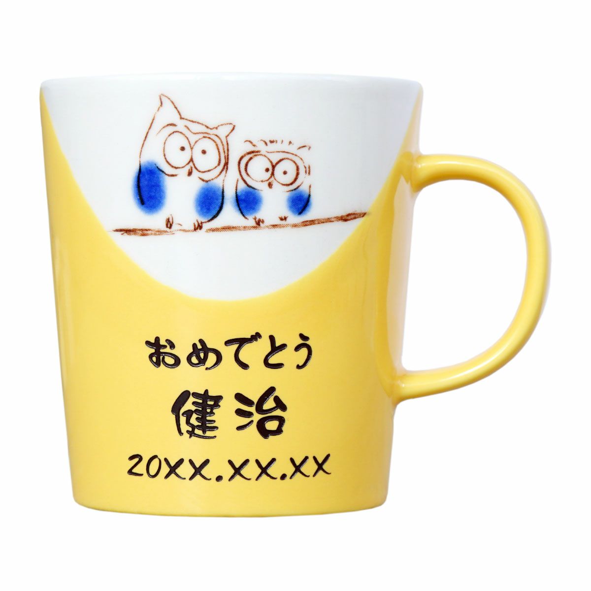 落ち着いた雰囲気のマグに落かん印風の名入れ 名入れ 美濃焼やわらマグ ペア