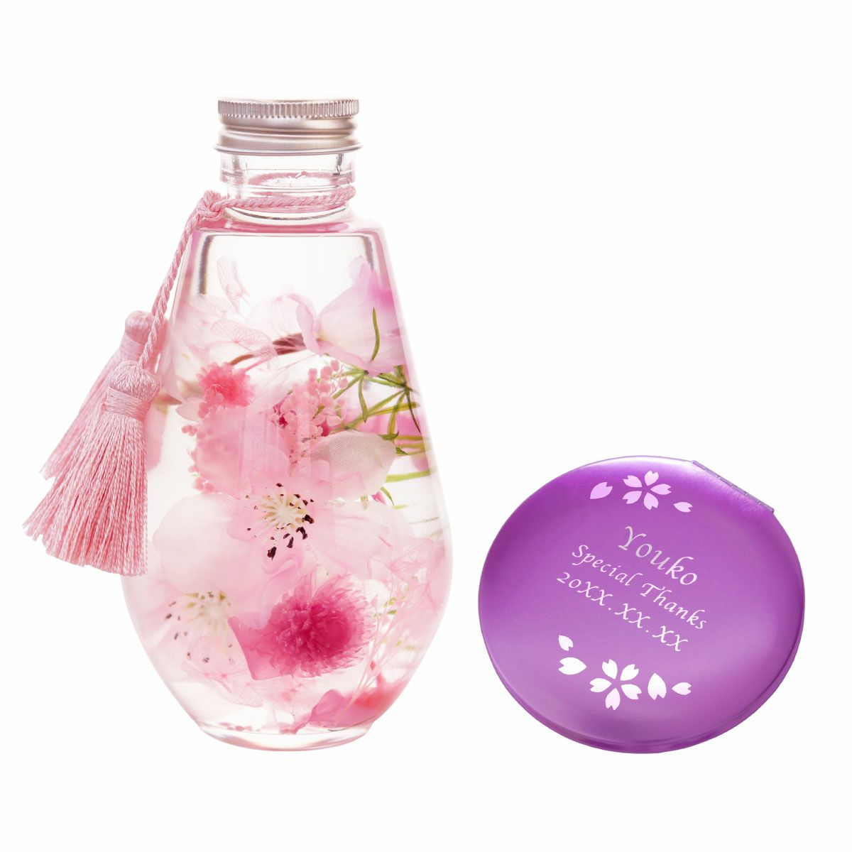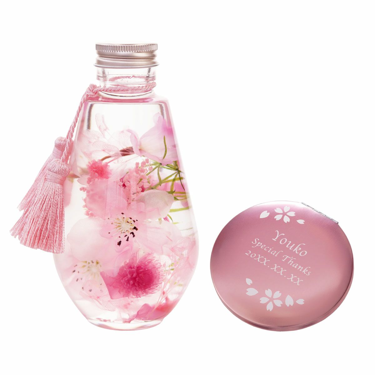名入れのオリジナルアイテム、華やかな花束、おいしいお菓子が揃う