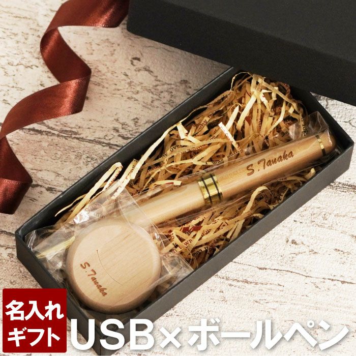 きざむ限定!名入れボールペン&USBメモリの2点セット 天然木を使用した木製ボールペンところんとしたフォルムが特徴の木製USBの贈り物にぴったりなギフトセット♪
