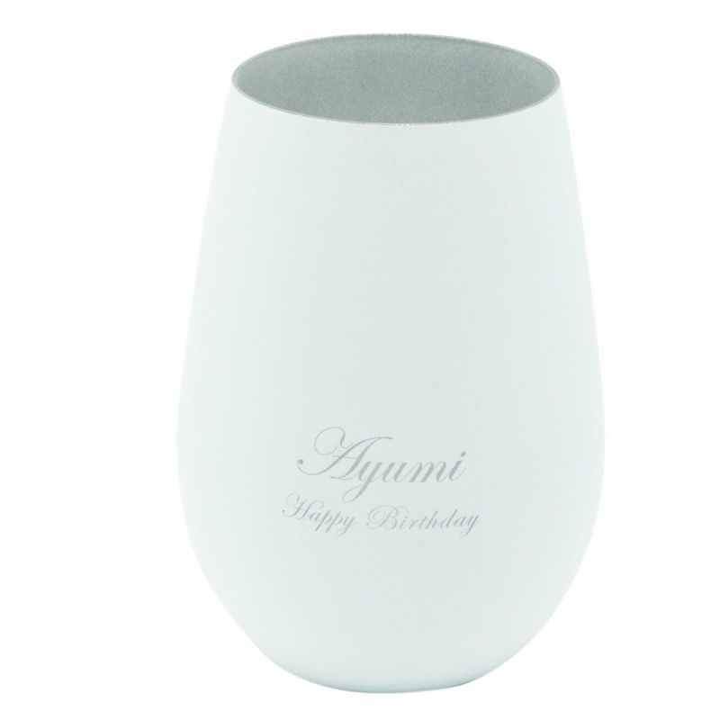 ピュアホワイトのガラスの内側に キラキラ飲み物がきらめくメタリックカラーグラス。