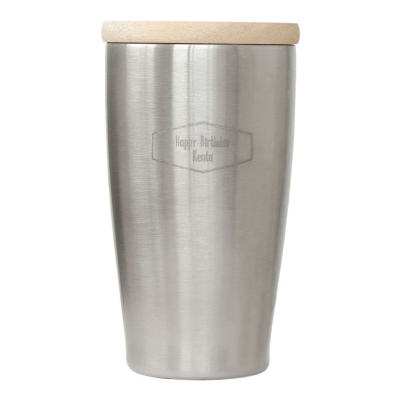 ■材質:本体・ステンレス、フタ・天然木、シリコン ■サイズ:口径80mm×H142mm ■容量:350ml ■重量:約215g