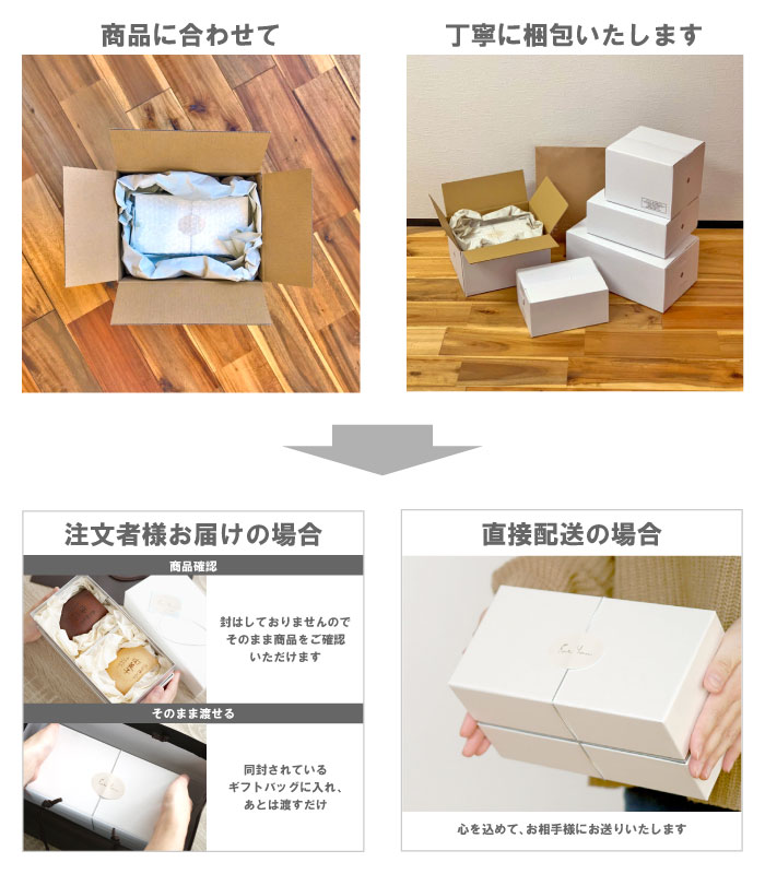 配送先のお名前がご注文者様と異なる場合は、ラッピング済の状態にて直送ギフトとして対応いたします。