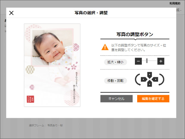 使用したい画像を選択後、写真の位置や大きさを変更したい時は「写真の位置を調整する」をクリックします。