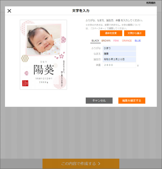 すべての編集が完了後、「この内容で作成する」ボタンをクリックし、プレビュー・仕上がりを確認してください。