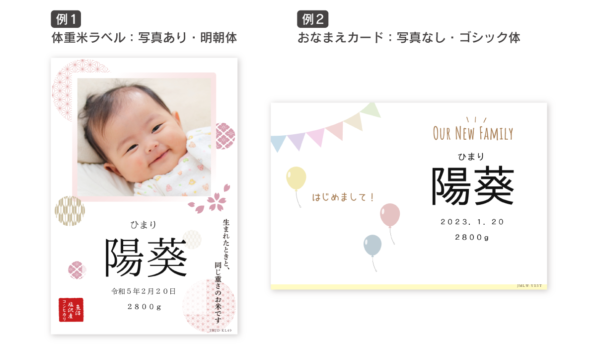 写真・ふりがな・お名前・生年月日・出生体重をプリント