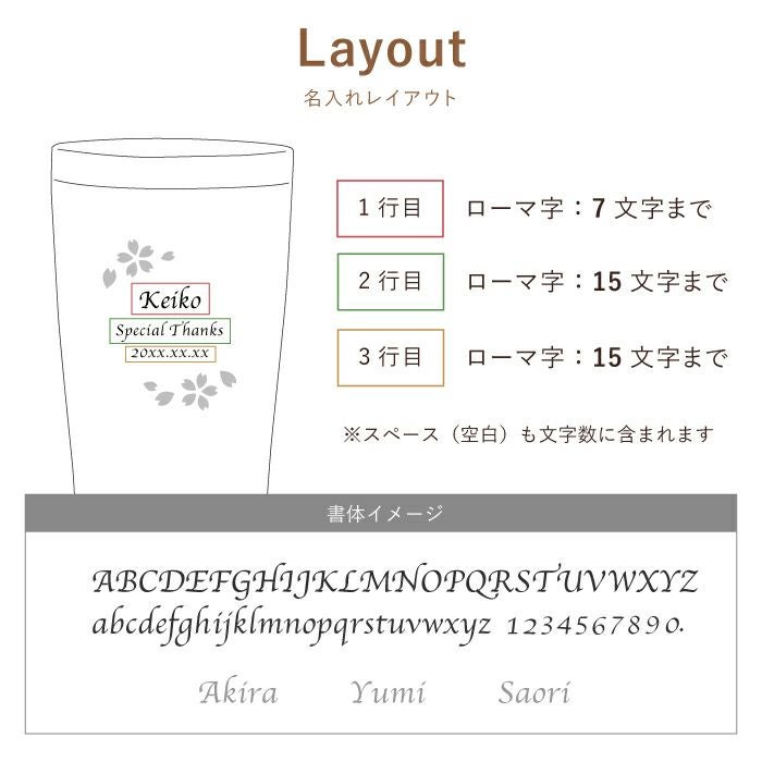 他の画像を見る 送料無料 最短当日発送可能 ひらりと舞うさくらに想いを彫刻してお届けします 名入れ真空断熱ステンレスカラータンブラー450ml桜ペアセット ¥ 9,960 税込 詳細を見る お気に入りに登録する